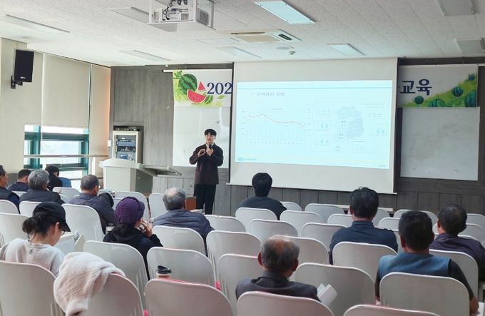 이번 교육은 급변하는 기후와 재배 환경에 대응해 고품질 수박 생산의 핵심인 토양 관리와 착과기부터 비대기까지의 생육 관리 등 농가들이 현장에서 겪는 애로사항을 근본적으로 해결하고자 마련됐다.