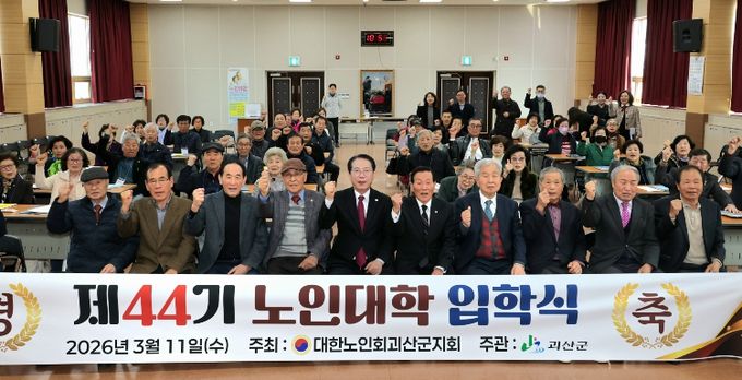 (아름다운교육신문) 충북 괴산군은 11일 노인회 지회 3층 회의실에서 송인헌 괴산군수, 노인회 관계자, 이명남 학생대표 외 39명의 학생이 참석해 제44회 노인대학 입학식을 개최했다고 밝혔다.