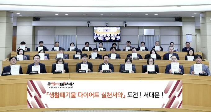 (아름다운교육신문) 서대문구가 이달 12일 구청 대회의실에서 간부 직원들이 참여한 가운데 ‘생활폐기물 다이어트 실천 서약 챌린지’를 진행했다.