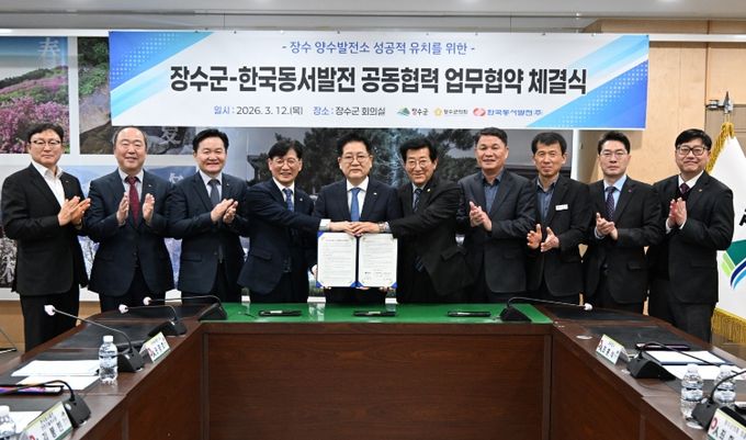 이날 협약식에는 최훈식 장수군수, 최한주 군의회 의장을 비롯해 권명호 한국동서발전 사장 등 기관 관계자 20여 명이 참석했다.