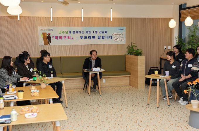 이번 간담회는 3년 전에 진행된 직원 소통 프로그램인 ‘너의 목소리를 들려줘’ 이후 마련된 자리로, 직원들의 고충과 건의 사항을 군수가 직접 듣고 군정에 대한 각자의 생각(아이디어)을 공유하기 위해 추진됐다.