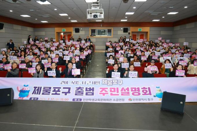 인천시 중구는 지난 17일 오후 인천학생교육문화회관 소공연장에서 김정헌 중구청장과 구의원, 지역 주민 등 200여 명이 참석한 가운데 ‘제물포구 출범 주민설명회’를 성황리에 개최했다.