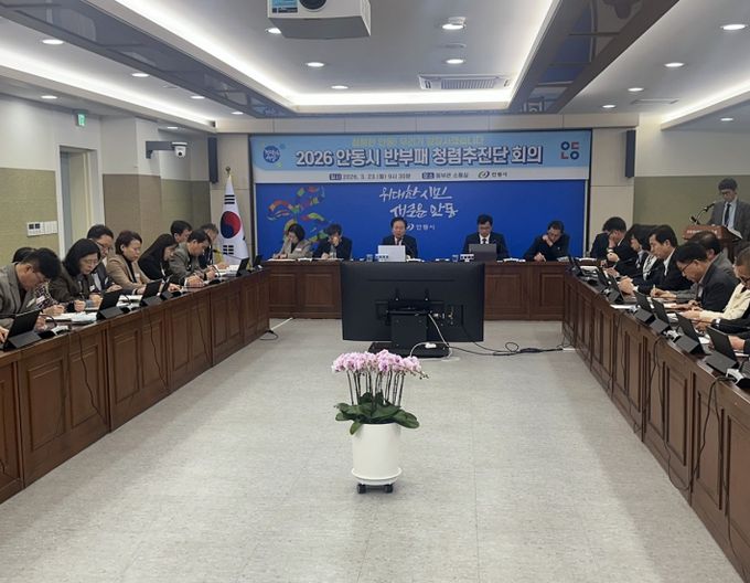 (아름다운교육신문) 안동시는 3월 23일 안동시청 웅부관 소통실에서 권기창 안동시장을 비롯한 부시장, 국․소장 등 간부공무원이 참석한 가운데 ‘2026년 반부패․청렴 추진단 회의’를 개최하고, 종합청렴도 향상을 위한 추진체계와 반부패․청렴 종합계획을 공유했다.