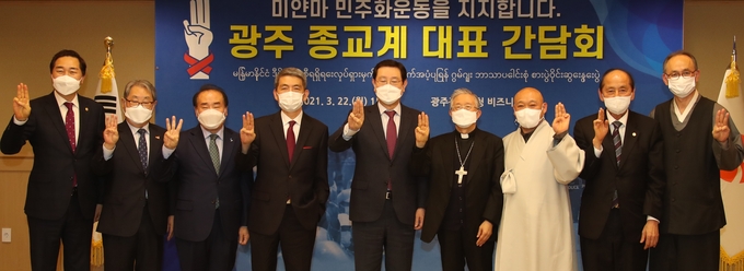 간담회에서는 기독교, 불교, 천주교, 원불교, 광주향교 등 종교단체 대표들과 시장, 시의회 의장, 교육감이 함께 미얀마 군부 쿠데타 반대와 민주화 지지를 위한 실천 방안을 논의하고 입장을 발표하기로 했다.