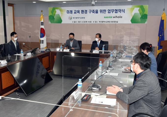 이번 협약은 양기관의 신뢰를 바탕으로 부산지역 학교환경에 네이버 웨일 스페이스 플랫폼을 도입, 고도화하여 미래교육 환경을 구축하기 위한 것이다.