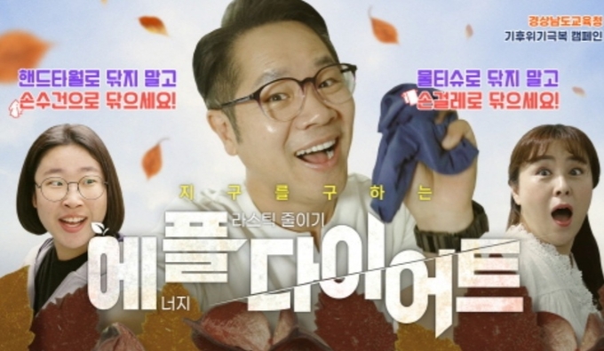 경남교육청은 실천방안으로 ‘에너지·플라스틱 줄이기 캠페인’의 9~10월 주제로 ‘핸드타월로 닦지 말고 손수건으로 닦으세요! 물티슈로 닦지 말고 물걸레로 닦으세요!’를 정하고, 캠페인 영상을 제작해 학교·교육기관 누리집과 유튜브 등 사회관계망서비스(SNS)에 탑재했다.