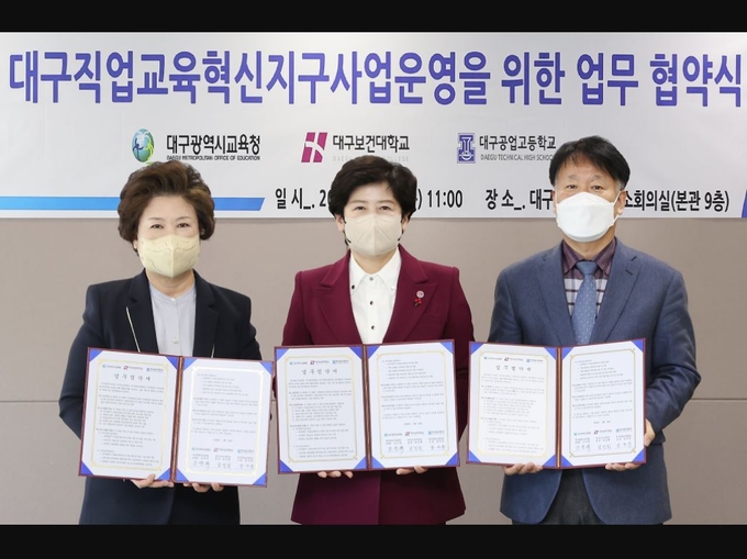 대구시교육청(교육감 강은희)은 2월 24일(목) 오전 11시에 대구보건대에서 치과산업분야 맞춤형인재 양성을 위해 대구광역시교육청-대구보건대-대구공고와 업무협약식을 개최했다고 밝혔다.
