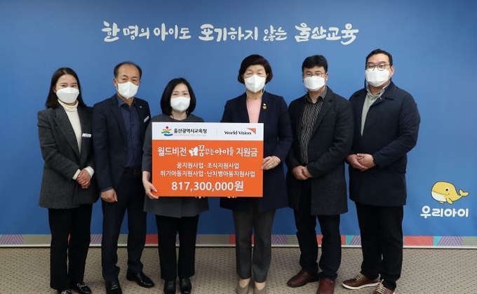 울산시교육청은 10일 접견실에서 월드비전과 취약계층 학생들의 꿈을 응원하고, 어려운 여건에 놓인 학생들이 슬기롭게 이겨 낼 수 있도록 지원금 전달식을 열었다.