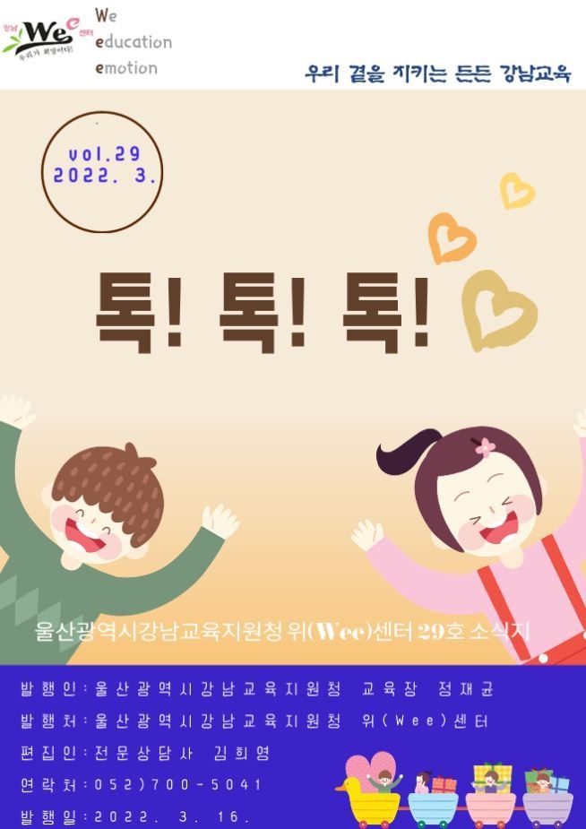 울산강북교육지원청(교육장 장원기) 강북위(Wee)센터는 오는 21일부터 전문상담인력이 배치되지 않은 강북 관내 초등학교 19개교를 정기적으로 순회하며 학생과 학부모 상담, 교직원 자문, 유관기관 연계 등을 지원하게 된다.