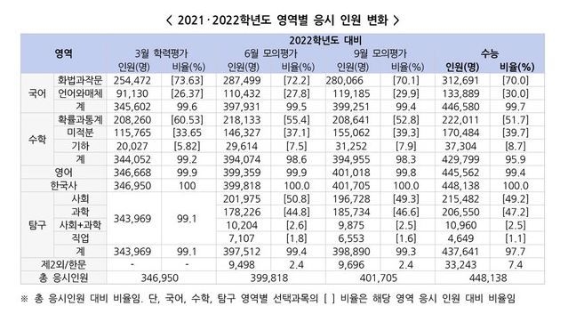 다만 오미크론 유행 상황의 심각성을 고려해 격리 중인 학생들의 현장 응시 제외방침은 지난해와 동일하게 유지된다. 오는 24일 원격수업 시행·재택치료 등으로 등교하지 못하는 학교·학년·학급의 고교생은 온라인으로 제공되는 문제지로 '재택 응시'해야 한다.