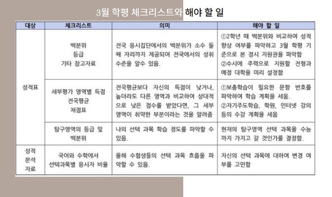 교육계 관계자는 "이번 학평이 귀한 실전 경험이 되는 만큼 예비수험생 여러분들이 최선을 다해주기 바란다"며 "성적결과에 따라서 향후 수능대비 학습과 대입전략 수립의 출발점으로 삼고 공부계획을 세워야 한다"고 조언했다.