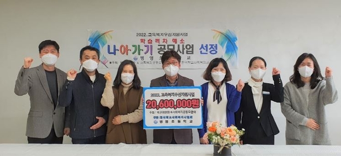 울산 병영초등학교(교장 전인식)는 사회복지공동모금회 복권기금사업의 일환으로 한국학교사회복지사협회가 주관한 경계성지능 아동(느린학습자) 사회적응령 향상 지원사업인 ‘나아가기(나답게아름답게가치롭게기쁘게) 공모사업’의 전국 20개교 선정에 포함되어 연간 사업비 2,060만 원을 지원받게 되었다.