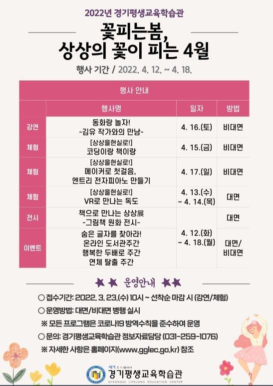 참여를 희망하는 사람은 경기평생교육학습관 누리집(www.gglec.go.kr)을 통해 23일부터 신청하면 된다.