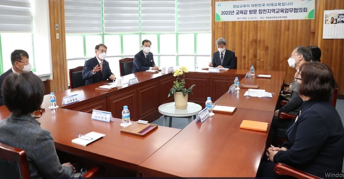 경상남도교육청(교육감 박종훈)은 23일 오전 합천교육지원청에서 박종훈 교육감, 합천지역 학부모와 교육관계자 등 40여 명이 참석한 가운데 합천교육의 발전방안을 논의하는 지역교육업무협의회를 열었다.