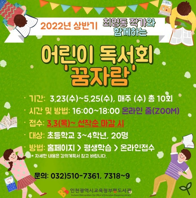 인천광역시교육청부평도서관(관장 이정기)은 5월 25일(수)까지 어린이 독서회 ‘꿈자람’을 운영한다.