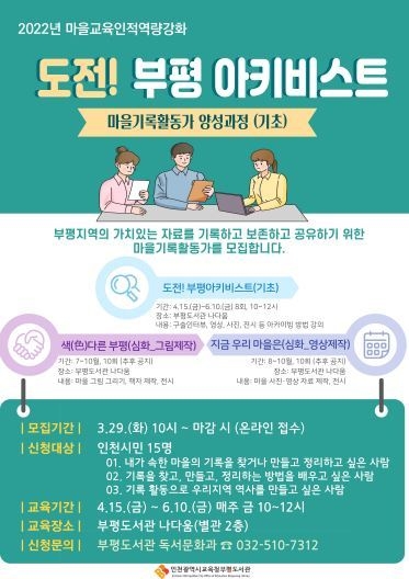 인천광역시교육청부평도서관(관장 이정기)은 부평의 가치 있는 자료를 기록·보존하기 위한 마을기록활동가를 29일부터 모집한다.