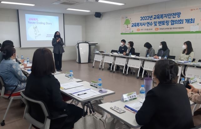 경상남도교육청(교육감 박종훈)은 올해부터 강화한 교육복지안전망 사업을 위해 28일(월) 교육복지사 연수와 업무 지원·지도 협의회를 열었다.