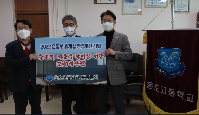 황인원 총동문회 회장은 ’전통있는 운호고 씨름부와 축구부 선수들이 좀 더 쾌적한 환경에서 운동하며 자신의 꿈을 위해 더욱 노력하기를 바라는 마음에서 락커장을 기증하게 됐다.“ 며 ”후배들이 힘든 일이 있어도 포기하지 않고 열심히 운동하길 바란다.“고 당부했다.