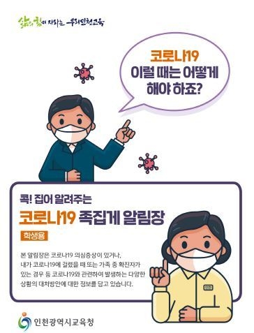 인천광역시교육청(교육감 도성훈)은 스스로 실천하는 자율·책임 방역을 위한 「콕! 집어 알려주는 코로나19 족집게 알림장」 핸드북 자료를 개발했다고 28일 밝혔다.