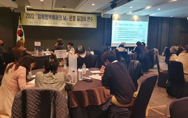 1부는 지난해 ‘함께행복배움의 날’을 운영교 사례 나눔을 통한 종합평가의 의미와 운영 노하우 공유, 2부는 학교별 워크숍을 통한 학교 실무팀이 행복배움학교 운영에 대한 성찰과 논의를 진행했다. 이번 워크숍에서는 교육공동체와 의미 있는 성찰 협의회를 준비하기 위한 절차와 과정, 이를 토대로 학교개방의 날과 주제 토론을 기획하는 시간을 가졌다.