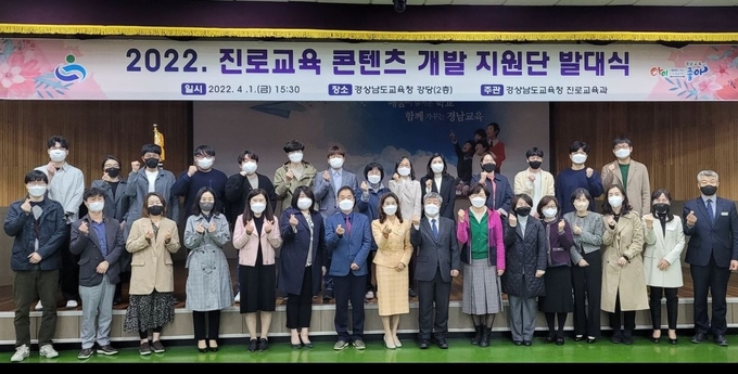 경남교육청은 1일 본청 강당에서 ‘2022년 진로교육 콘텐츠 개발 지원단’ 발대식을 열고 학생들의 자기주도적 진로역량을 키우기 위한 콘텐츠와 프로그램을 개발한다.