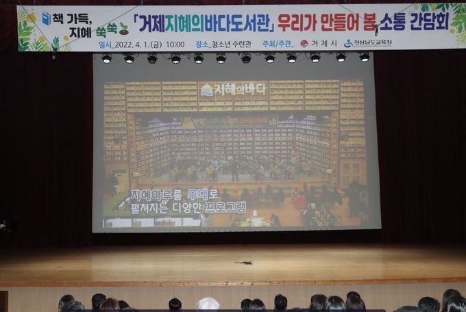 경상남도교육청(교육감 박종훈)은 4월 1일(금) 오전 거제시(시장 변광용)와 거제시 청소년수련관에서 지역 학부모 120여 명이 참석한 가운데 거제지혜의바다도서관 조성을 위한 학부모 간담회를 열었다.