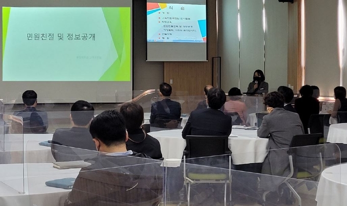 연수에서는 인·허가, 제증명, 질의 등을 위해 교육청을 찾는 민원인 대상 방문 및 전화친절 응대 요령과 공공기관이 보유·관리하고 있는 정보에 대해 국민이 청구했을 때 제공하는 ‘정보공개 청구’와 사전에 적극적으로 제공하는 ‘사전정보공개’ 제도를 중점적으로 교육했다.