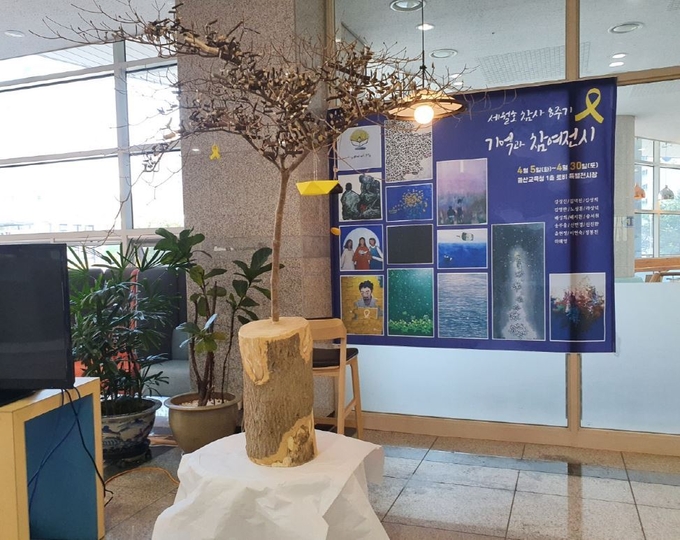 울산시교육청은 지난 5일부터 30일까지 본청 로비에 추모 작품도 전시하고 있다. 울산민족미술인협회 소속 작가들의 회화작품 13점과 함께 시민 304명의 참여로 완성된 304개의 솟대를 부착하여 만든 기억과 평화의 나무‘세월호 솟대’를 전시하고 있다.