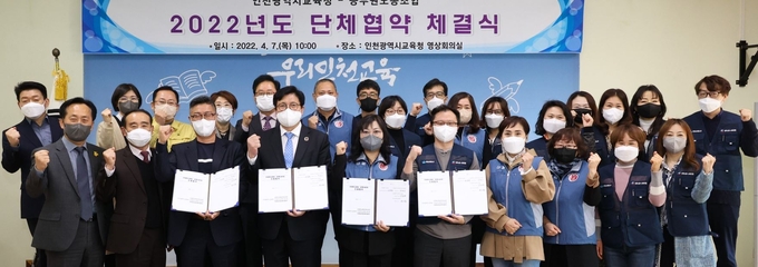 인천광역시교육청(교육감 도성훈)은 3개의 공무원노동조합(인천광역시교육청공무원노동조합, 인천광역시교육청노동조합, 한국공무원노동조합인천광역시교육청지부)과 7일 단체협약을 체결했다.