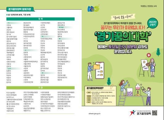 도교육청 제평섭 마을교육공동체정책과장은 “경기꿈의대학이 3년 만에 대면 수업이 이뤄지는 만큼 학생이 안전하게 진로 탐색을 할 수 있도록 지원하겠다”면서 “앞으로도 학생 수요를 반영해 온라인형 강좌를 확대하고 단기 강좌 유형을 다양화하는 등 꿈의대학이 더 발전하도록 노력하겠다”고 말했다.