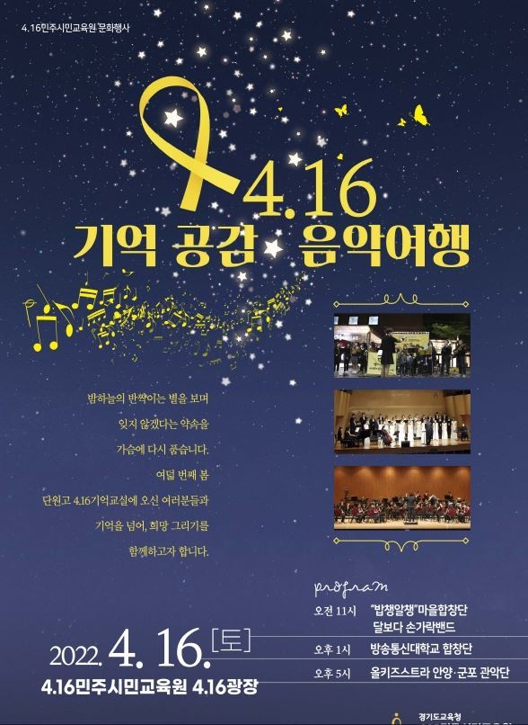 4.16민주시민교육원(원장 전명선)이 16일 ‘기억 공감 음악여행’을 진행한다고 14일 밝혔다.
