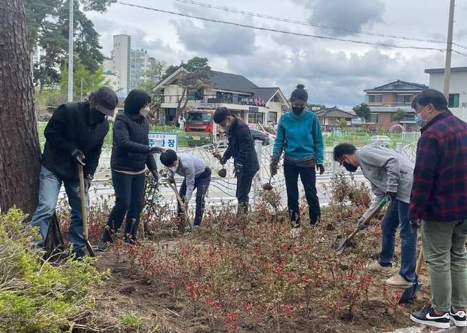 이번 행사에서 △화단의 돌과 풀 제거 △연수원 솔숲길 정비 △꽃잔디・송엽국 4000본과 철쭉 2000주를 심었다.