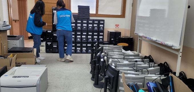 울산 강북·강남교육지원청 학교지원센터는 학교에 쓰지 못하는 정보화기기를 수거해 매각하고 세입으로 다시 학교로 돌려주는 불용 정보화기기 매각 업무를 집중적으로 지원한다.