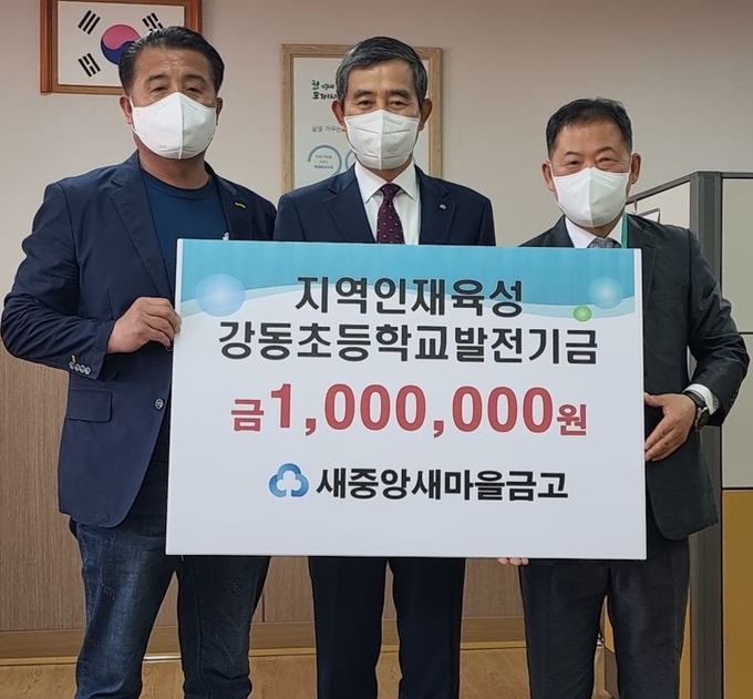 강동초등학교(교장 서영택)는 강동MG새중앙새마을금고(이사장 한상찬)와 바른 인성과 큰 꿈을 키워가는 행복한 지역 인재 육성 지원을 위한 학교발전기금 전달식을 가졌다고 밝혔다.
