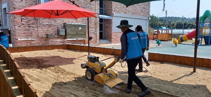 강북·강남교육지원청 학교지원센터는 이 같은 고충 해소를 위해 3년 차에 걸쳐 모래 소독을 지원하고 있다. 올해는 유·초·특수학교 137교를 대상으로 연 2회 모래소독을 한다. 소독은 학생의 건강을 위해 약품을 사용하지 않고, 모래 뒤집기 후 이물질을 제거하고 고온의 스팀·살균으로 진행한다. 모래뿐만 아니라 고무바닥, 놀이기구까지 소독해 놀이시설 전체의 안전을 확보할 계획이다.