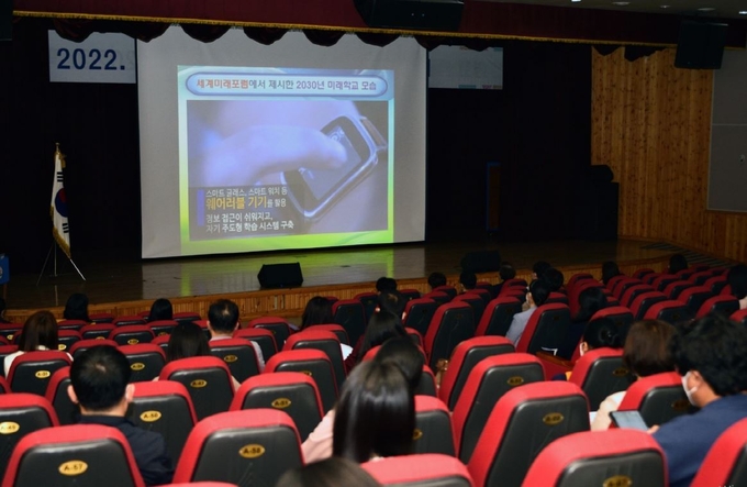 또 교원업무경감과 수업집중 지원을 위해 교육청에서 마련한 스마트 기기 전용 콜센터, 5년간 하자·유지보수, 레이저 각인, 필수 앱과 스마트 단말관리프로그램 등의 설치·보급도 함께 설명했다.