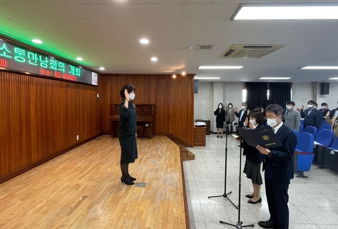 청렴 선서식은 기획·감사팀장과 계약관리팀장이 선서대표자가 되어 청렴서약 결의문을 낭독하며 공직자로서 투명하고 깨끗한 공직풍토 실현과 공무원 행동강령을 준수할 것을 선서했다.