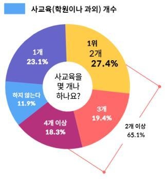 전국교직원노동조합(전교조)에 따르면 어린이 중 88.1%가 학원이나 과외 등 사교육을 하고 있었고, 2개 이상 한다는 비율은 전체 조사 대상의 65.1%였다.
