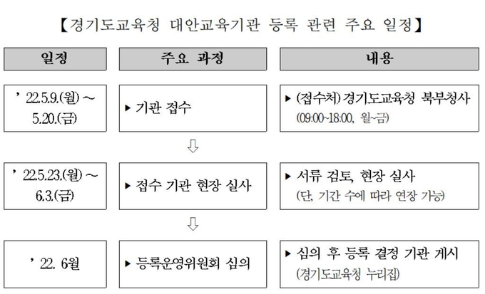 도교육청은 접수한 기관을 대상으로 23일부터 다음 달 3일까지 현장 실사를 실시해 교육과정, 시설 등 제반 사항을 확인하고 관련 심의를 거쳐 6월에 도교육청 누리집에서 교육감 등록 기관을 공개할 예정이다.