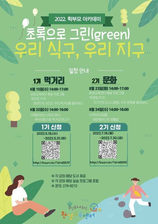 충청북도교육청 환경교육센터는 ‘2022학년도 학부모 환경 아카데미’를 운영할 계획이라고 밝혔다.