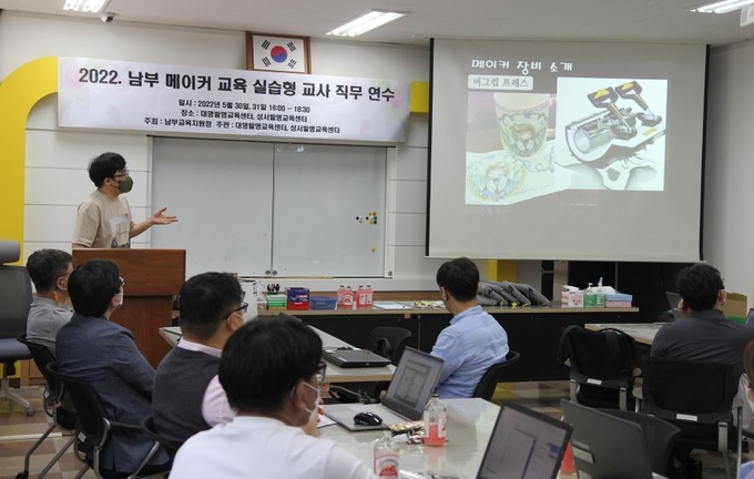 대구남부교육지원청(교육장 김기호)은 5월 30일(월)부터 5월 31일(화)까지 성서발명교육센터와 대명발명교육센터에서 남부 관내 초·중학교 교사 61명을 대상으로 ‘2022. 남부 메이커교육 실습형 직무 연수’를 개최했다.