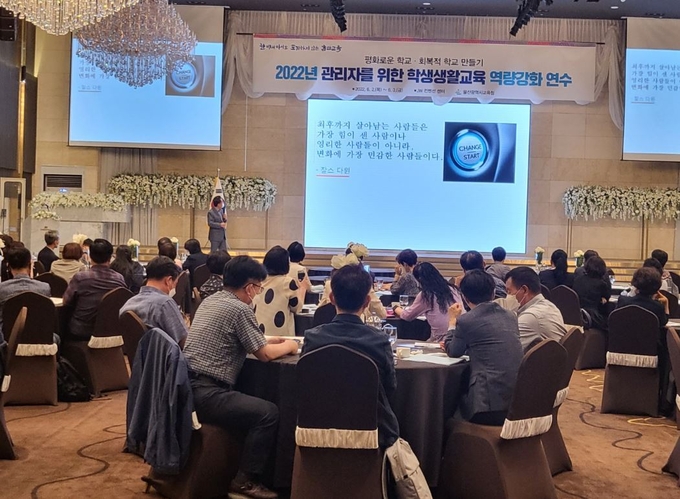 울산광역시교육청이 2일부터 3일까지 전 학교 교감을 대상으로 평화로운 학교․회복적 학교를 만들기 위한 학생생활교육 역량강화 연수를 실시했다.
