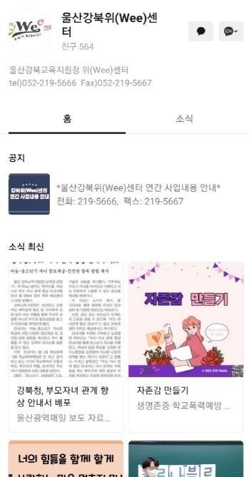 울산광역시 강북교육지원청(교육장 장원기) 위(Wee)센터는 학생 및 학부모와 소통을 강화하기 위하여 지난해 카카오톡채널 개설 등을 통해 홍보 활동을 강화하고 있다고 밝혔다.