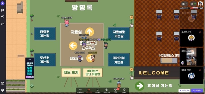 울산시교육청은 9일 초등학교 교사를 대상으로 수업 메타버스 체험과 활용 연수를 했다. 이날 줌을 활용한 비대면 연수에서는 도산초 이명길 교사와 태화초 김덕우 교사가 메타버스의 수업 활용 방안을 안내했다.