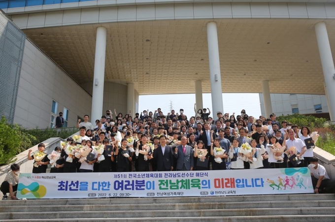 전라남도교육청(교육감 장석웅)이 6월 22일(수) 전남여성가족재단 공연장에서 제51회 전국소년체육대회 해단식을 개최했다.