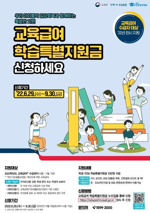 지원을 희망하면 29일부터 9월 30일까지 교육급여 학습특별지원금 신청 누리집(edupoint.kosaf.go.kr)을 통해 온라인으로 신청해야 한다.