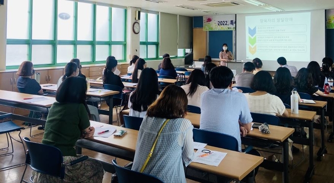 울산강남교육지원청(교육장 정재균)은 28일 특수교사 35명을 대상으로 특수교육대상학생 성인권 보호 역량강화 연수를 실시했다.