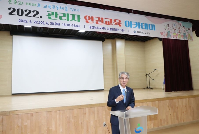 경남교육청은 지난 22일과 30일 공감홀에서 상반기 인권 교육 아카데미를 열었다. 유치원, 초·중등학교, 특수학교의 교(원)장·교(원)감, 교육전문직원 300명을 대상으로 특강과 토의 형식으로 총 2회를 진행했다.