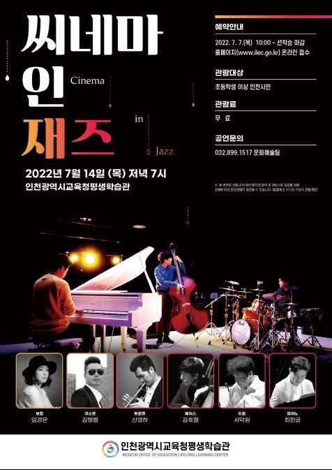 인천광역시교육청평생학습관(관장 김옥제)은 14일(목) 저녁 7시 ‘씨네마 인 재즈(Cinema in Jazz)’ 공연을 개최한다.