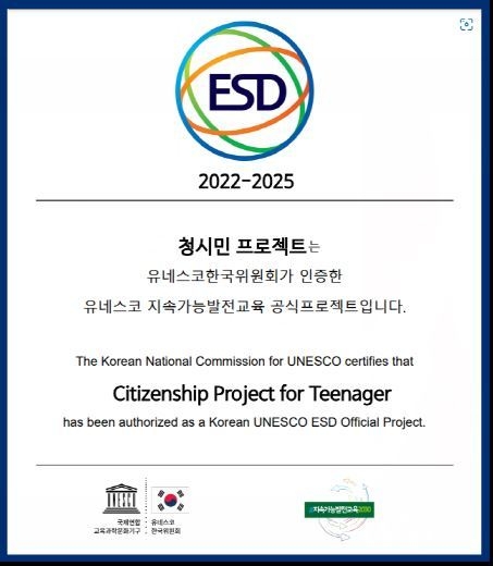 4.16민주시민교육원(원장 전명선)이 진행하는 ‘청시민 교육과정’이 유네스코한국위원회로부터 지속가능발전교육(ESD) 공식프로젝트로 인증을 받았다고 7일 밝혔다.